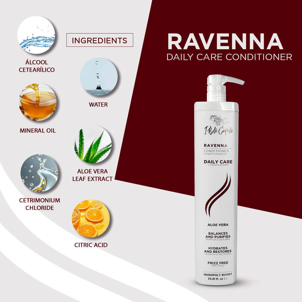 The Ravenna Daily Care Conditioner hydrates without weighing down the hair! Its deep hydration leaves the hair super soft, light, free-flowing, disciplined, and with intense shine. It protects against hair loss and breakage by strengthening the strands from root to tip.