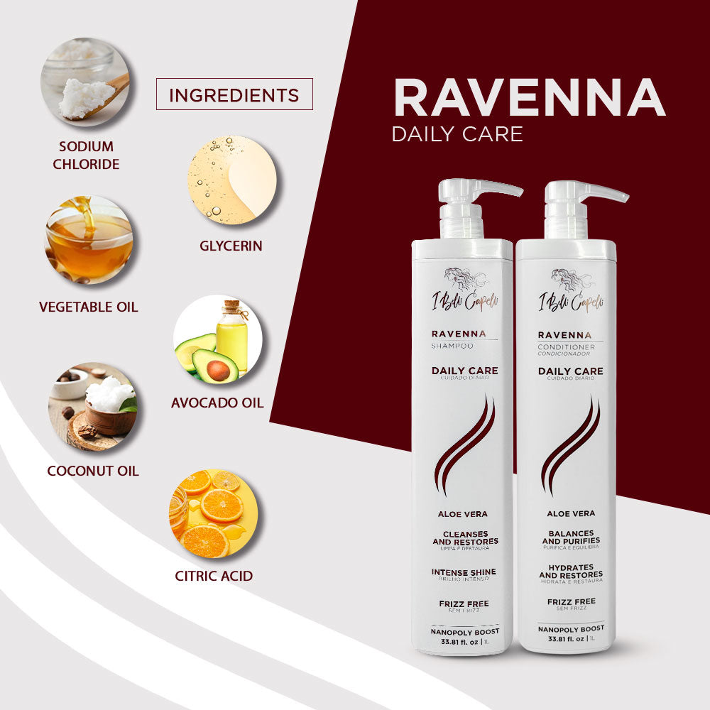 Ideal for all hair types, especially damaged, dry, or oily hair, the Ravenna Daily Care Kit with Repair Oil provide disciplined, super soft, and intensely shiny hair, making it easy to manage and healthier with each use.