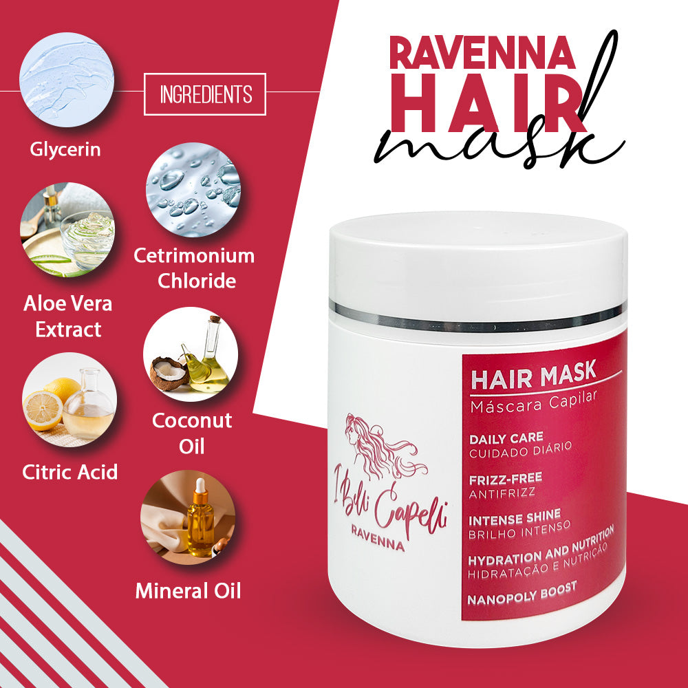 I Belli Capelli Ravenna Daily Care Kit – Shampoo and Conditioner 2x300ml + Hair Mask 500g + Hair Oil 60ml